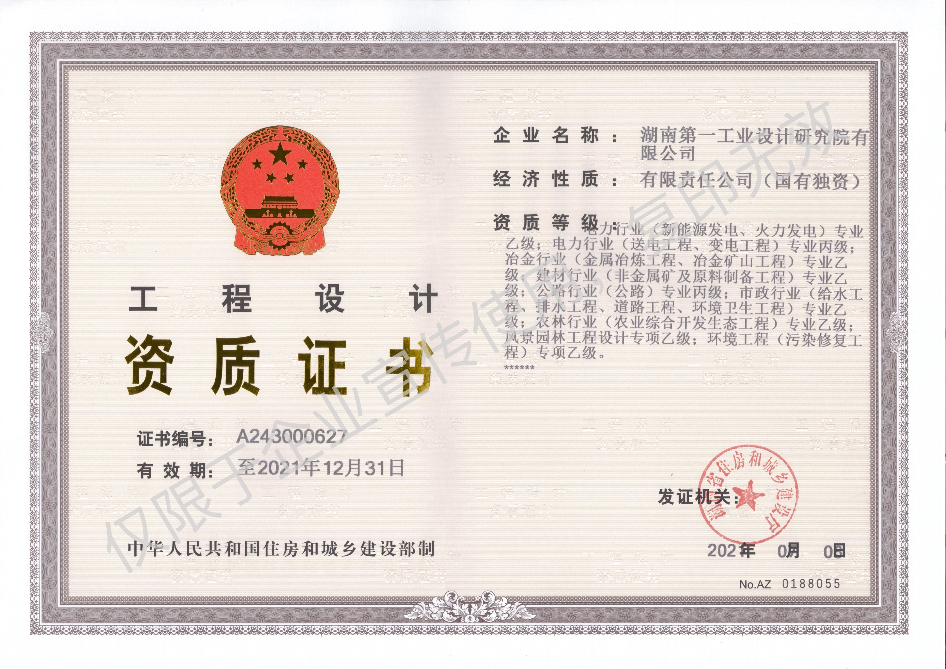 工程設(shè)計(jì)資質(zhì)證書